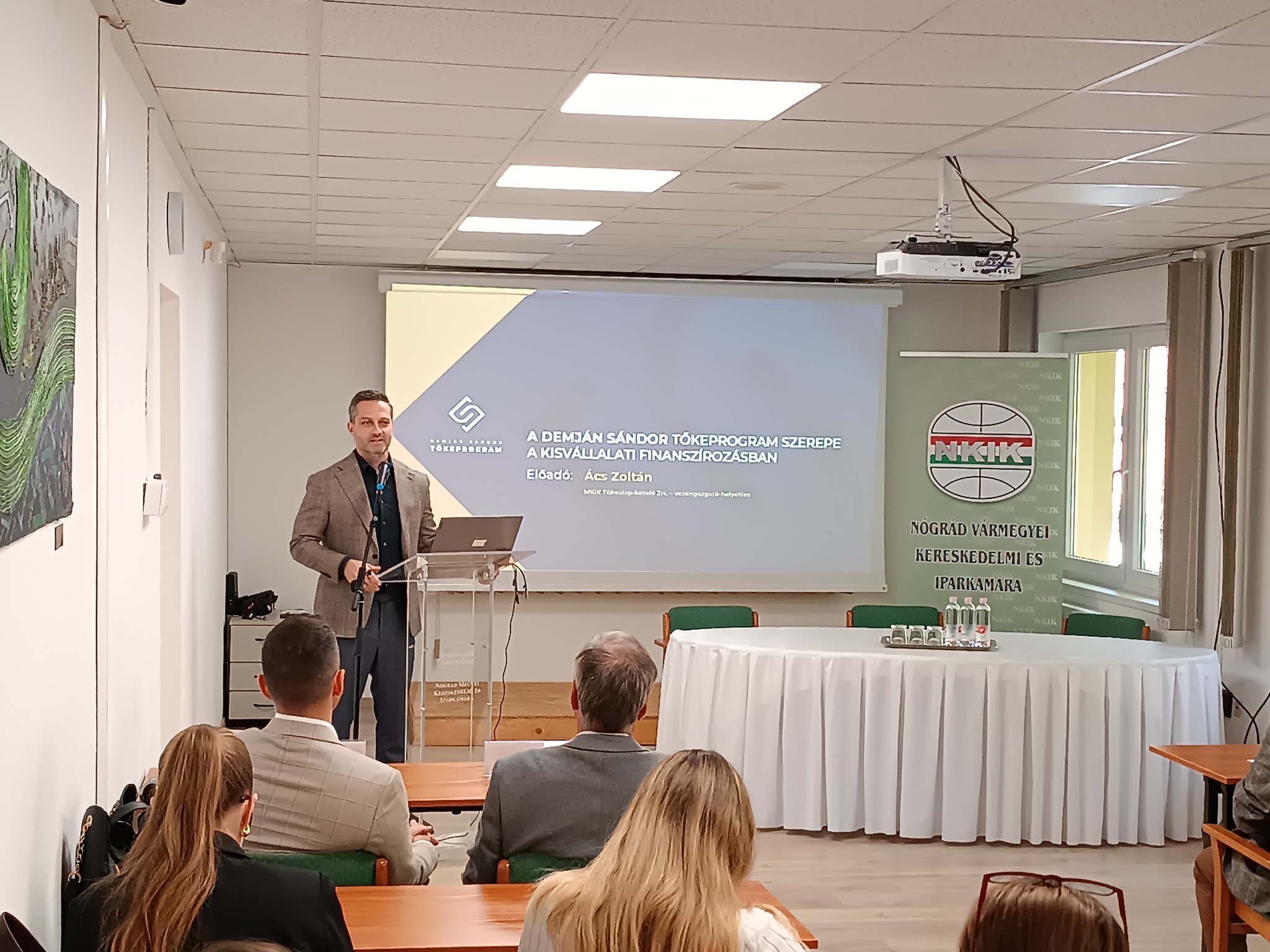 Ács Zoltán, a MKIK Tőkealap-Kezelő Zrt. vezérigazgató-helyettese bemutatta a 100 milliárd forintos keretösszegű Demján Sándor Tőkeprogramot, amely tőkefinanszírozással segíti a kkv-k növekedését és fejlesztéseit.